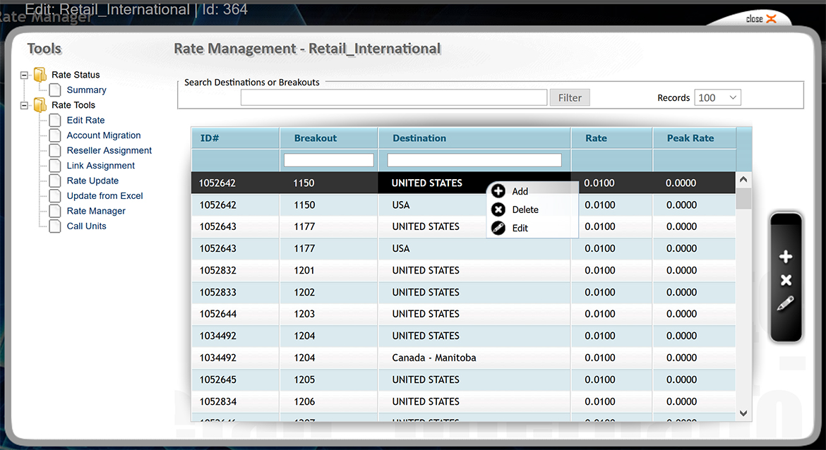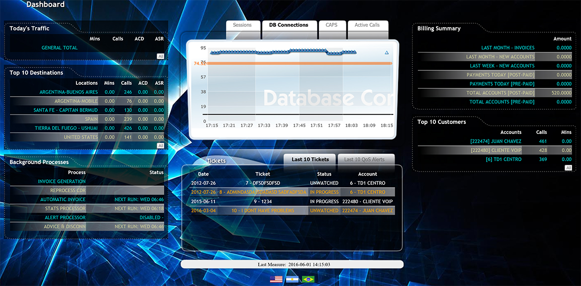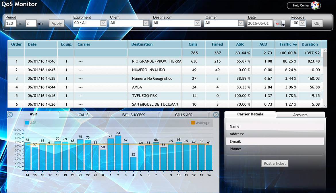 • Estadísticas de tráfico por ASR, ACD, por proveedor, cliente o destino