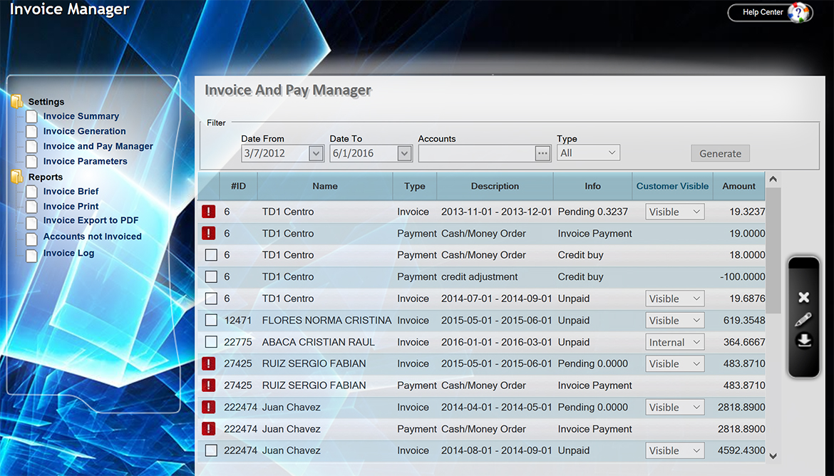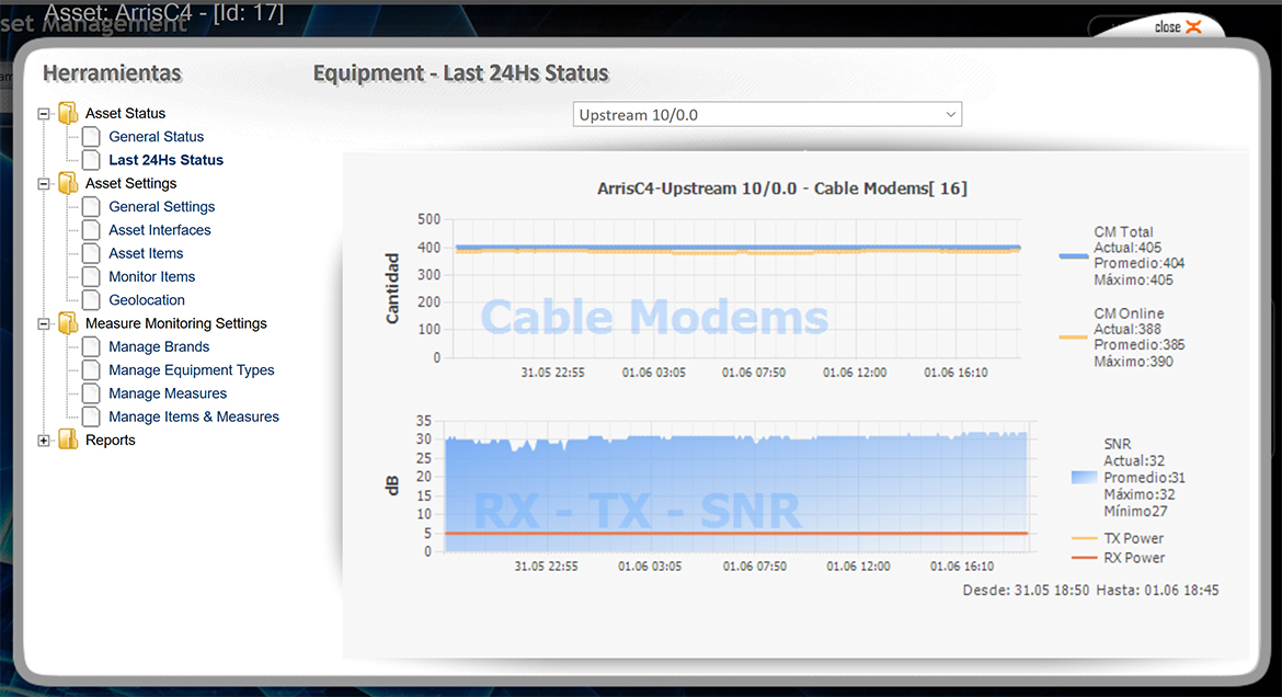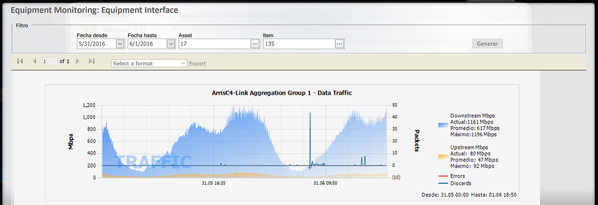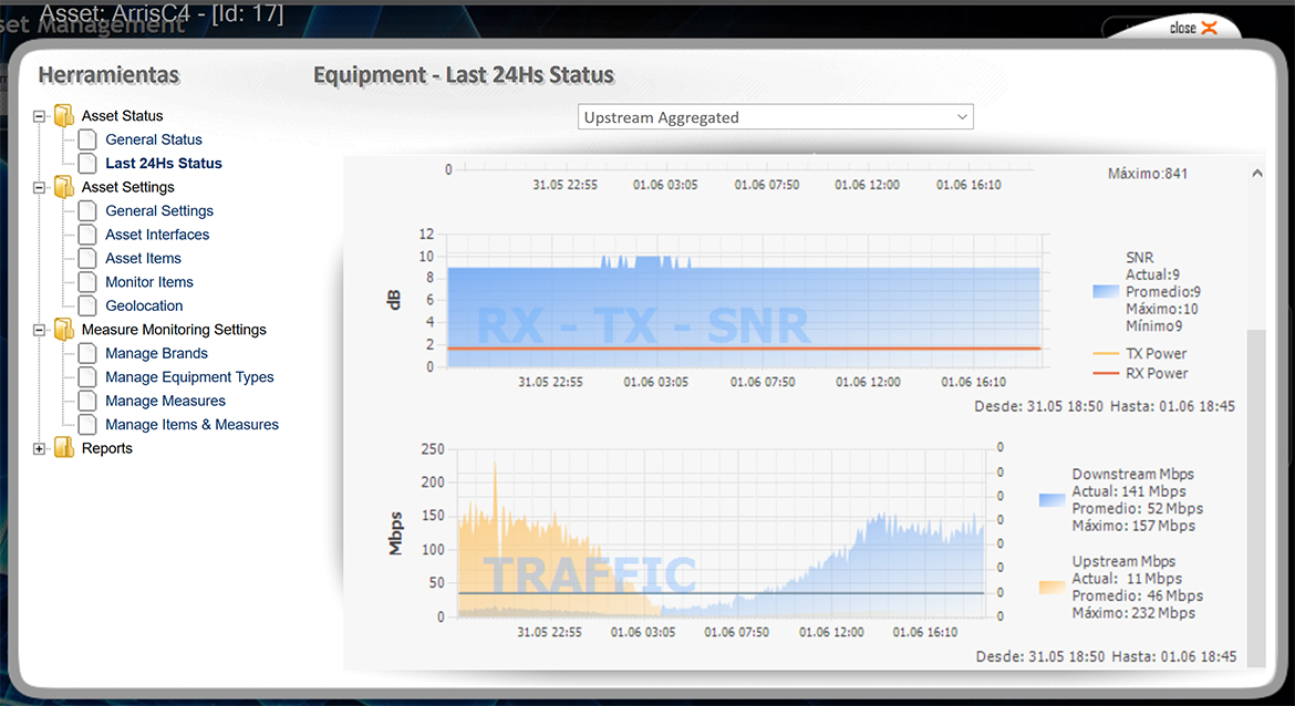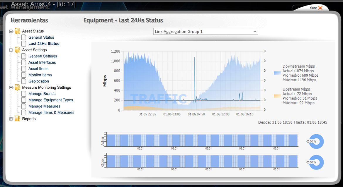 • Gráficos con estadísticas de 24 horas, con filtros por proveedor / cliente
